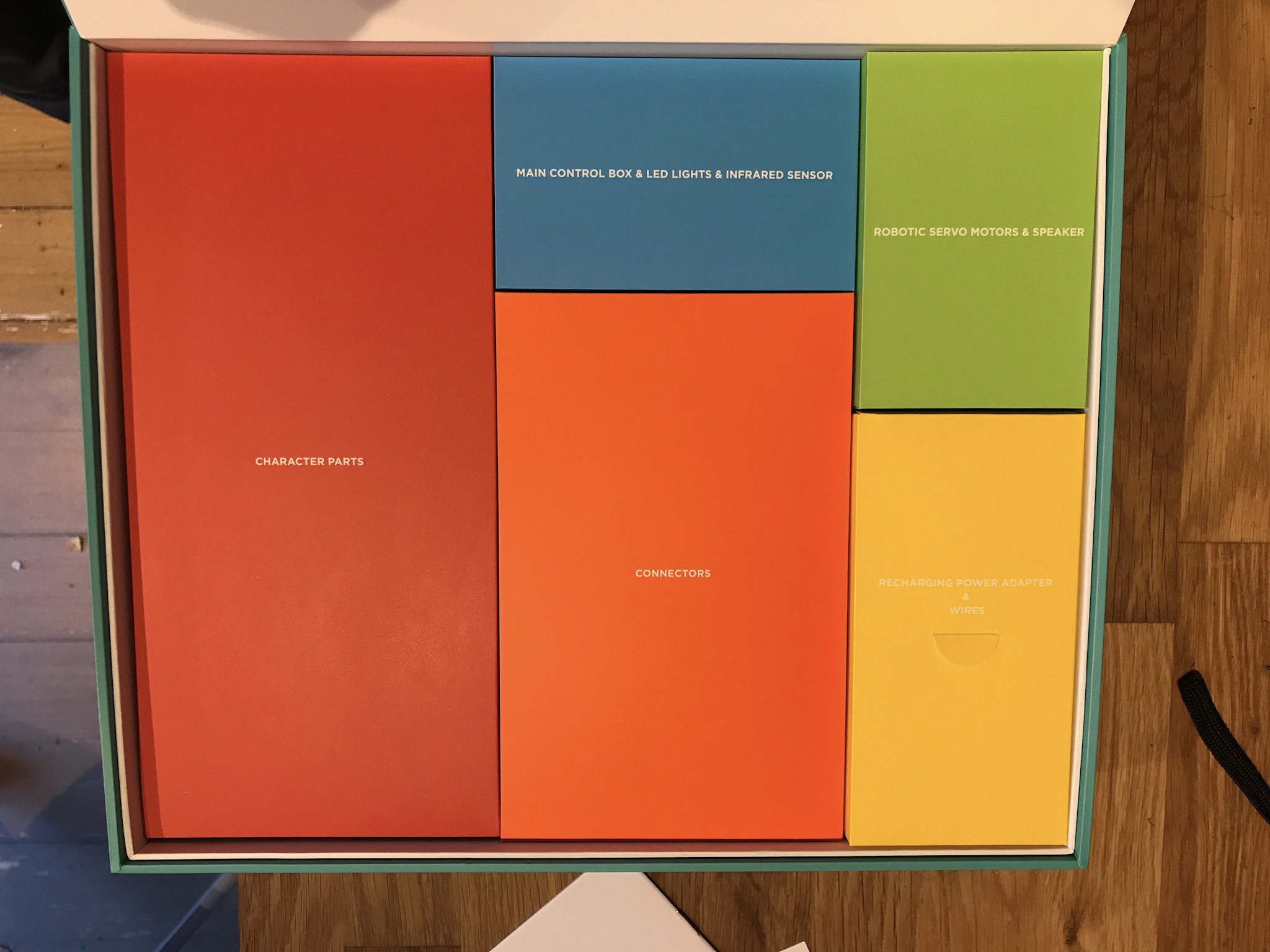 In the box the parts are neatly organised in coloured boxes: