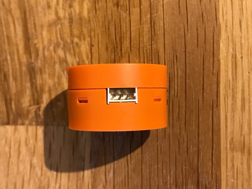 The controller has five 3 pin connectors for the daisy-chained devices, one 4 pin connector (for some peripheral that I could not figure out for the time being what it is) a 2 pin connector for an on/off switch and another 2 pin connector for an external LED (not sure exactly why they decided to have this is, and I haven’t found a corresponding LED add on that would connect here – but maybe it’s in the making). The battery is a 2S 1200mA LiPo and the nice thing is that the charging logic is built in the controller. This has advantages and disadvantages as charging the battery will have to be in-situ, but on the other hand you don’t need to remove the battery from the robot, something that might be sometimes tricky (and it certainly is in the case of AstroBot) because of the way the battery ends up located for the specific configuration of the robot.